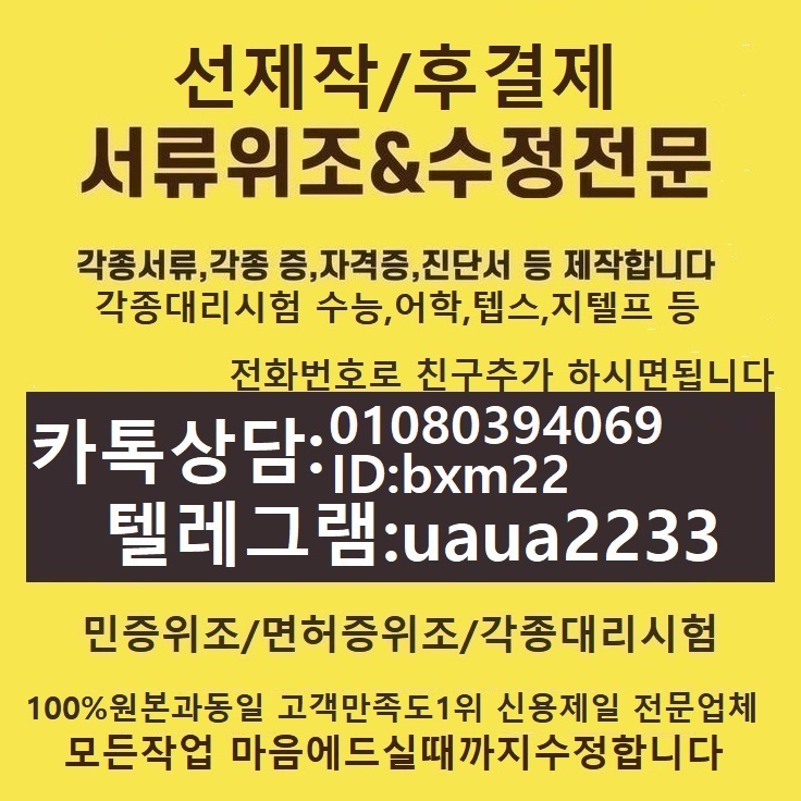 - 이전글[위조수정]]최종학력증명서위제작&토스대리시험「ㅋㅏ톡상담친추01080394069텔레uaua2233」외국대학교졸업장제작&혼인관계증명서제작&&성적표제작&은행통장거래내역서위조#상품권위조 25.12.23