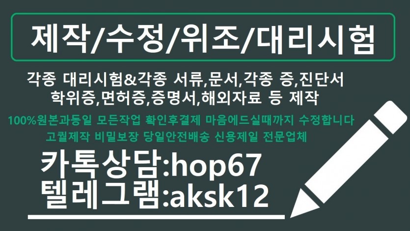 증명서제작위조Ø면허증대리시험Ø톡상담hop67텔레:aksk12대리시험전문업체#면허증위조#콘서트티켓위조#토익대리시험#재학증명서위조…
